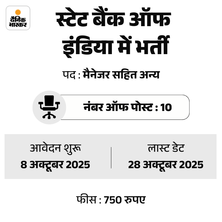 स्टेट बैंक ऑफ इंडिया (SBI) ने मैनेजर, डिप्टी मैनेजर सहित अन्य पदों पर भर्ती निकाली है। इस भर्ती के लिए आवेदन प्रक्रिया शुरू हो चुकी है। उम्मीदवार recruitment.sbi.bank.in पर जाकर अप्लाई कर सकते हैं।