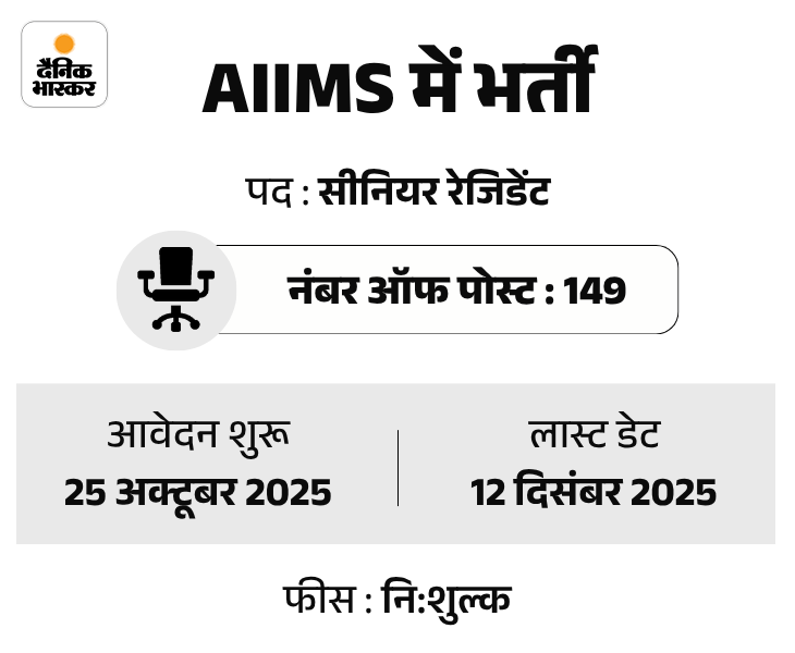 ऑल इंडिया इंस्टीट्यूट ऑफ मेडिकल साइंसेज, रायबरेली की ओर से सीनियर रेजिडेंट के पदों पर भर्ती निकली है। उम्मीदवार ऑफिशियल वेबसाइट aiimsrbl.edu.in पर जाकर आवेदन कर सकते हैं।