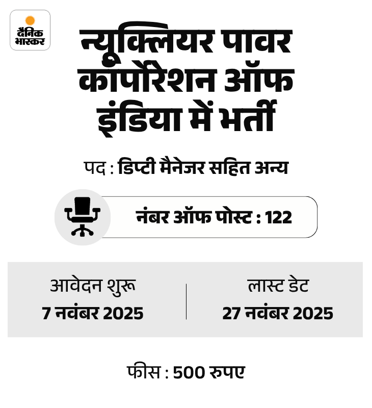 न्यूक्लियर पावर कॉर्पोरेशन ऑफ इंडिया लिमिटेड में ट्रेड अप्रेंटिस के पदों पर भर्ती निकली है। इस भर्ती के लिए आज से आवेदन शुरू हो रहे हैं। उम्मीदवार वेबसाइट npcilcareers.co.in पर जाकर ऑनलाइन अप्लाई कर सकते हैं।