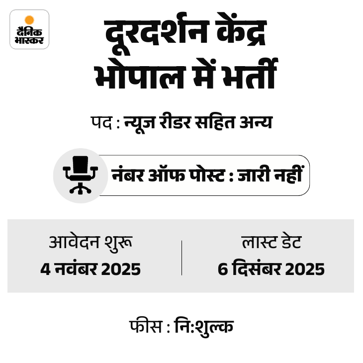 प्रसार भारती में 400 से ज्यादा पदों पर भर्ती निकली है। उम्मीदवारों को इस भर्ती के लिए दूरदर्शन केंद्र को ऑफलाइन आवेदन पत्र भेजना होगा। यह पद रेगुलर पद नहीं है। उम्मीदवारों को महीने में अधिकतम 7 असाइनमेंट दिए जाएंगे।