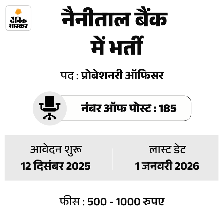 नैनीताल बैंक की ओर से कस्टमर सर्विस एसोसिएट, प्रोबेशनरी ऑफिसर और रिस्क ऑफिसर के पदों पर भर्ती निकाली गई है। इस भर्ती के लिए आवेदन प्रक्रिया शुरू हो चुकी है। उम्मीदवार ऑफिशियल वेबसाइट nainitalbank.co.in पर जाकर अप्लाई कर सकते हैं।