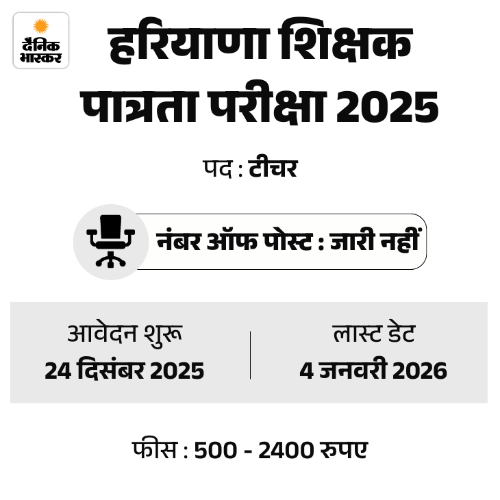स्कूल शिक्षा बोर्ड हरियाणा की तरफ से शिक्षक पात्रता परीक्षा (HTET 2023) के लिए रजिस्ट्रेशन शुरू हो चुका है। उम्मीदवार ऑफिशियल वेबसाइट htet.eapplynow.com पर जाकर ऑनलाइन आवेदन कर सकते हैं।