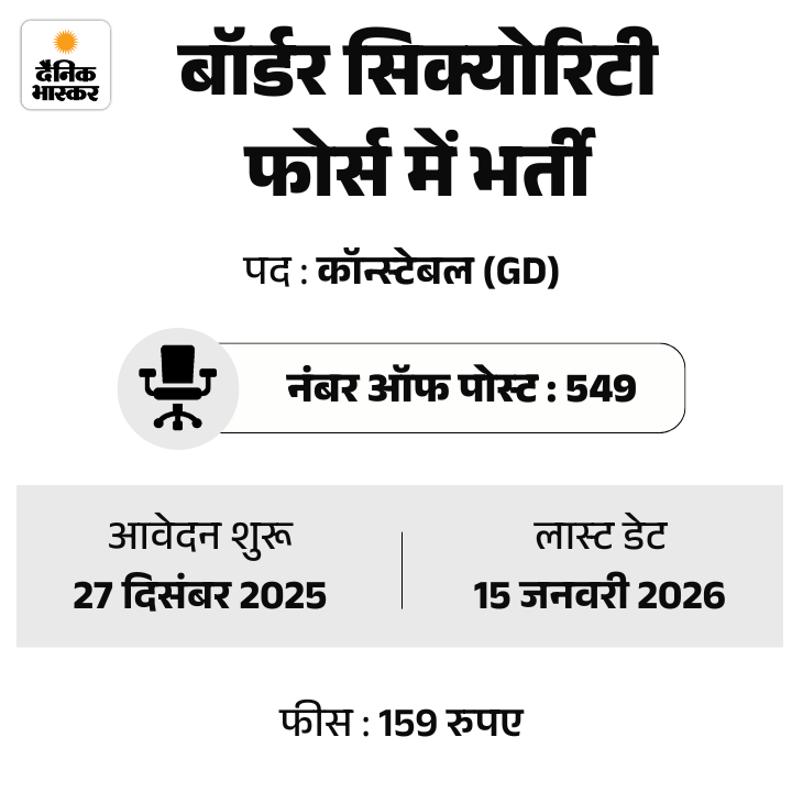 4. BSF में 549 पदों पर भर्ती के आवेदन की लास्ट डेट 15 जनवरी