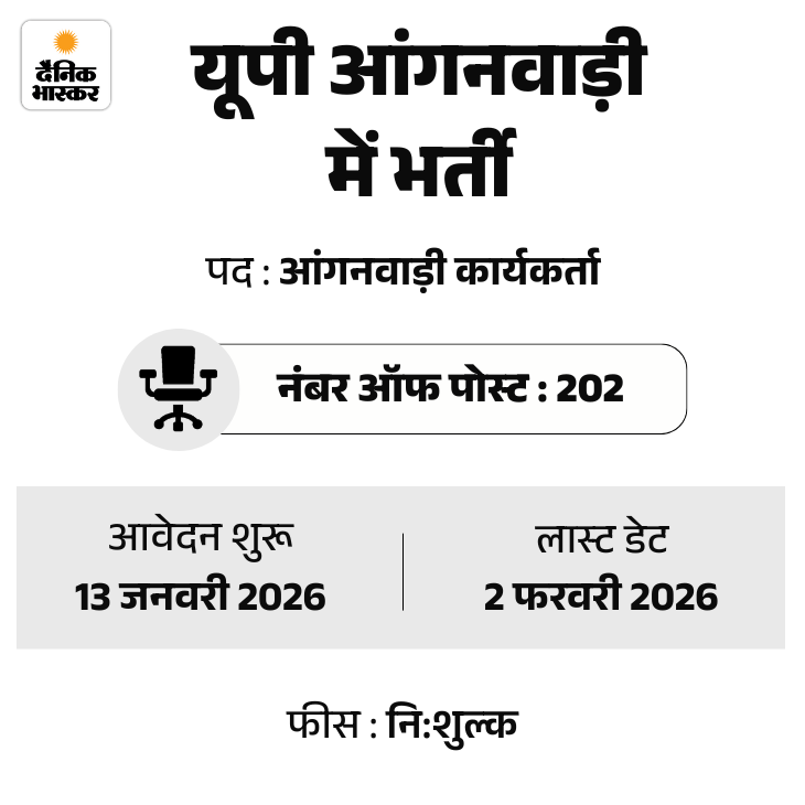 3. यूपी आंगनवाड़ी में 202 पदों पर निकली भर्ती