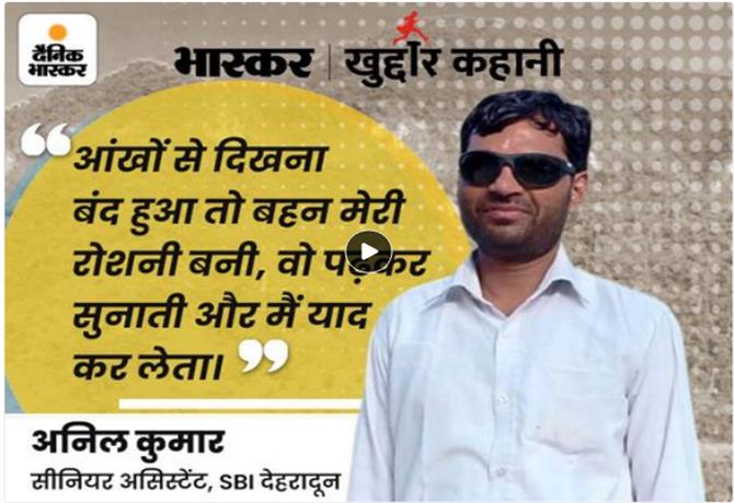 अनिल कुमार एडल्ट ब्लाइंड हैं। वो अपनी दोनों आंखों से नहीं देख सकते हैं। इसके बावजूद भी अनिल ने बैंक एग्जाम क्लियर किया।