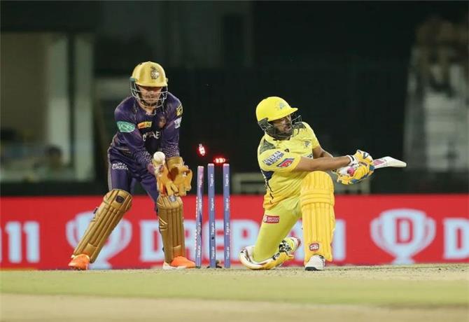 पावरप्ले में संभली हुई शुरुआत करने के बाद चेन्नई ने 11 ओवर तक 5 विकेट गंवा दिए। 3 विकेट तो टीम ने 10 ही गेंद के अंदर खो दिए। 10वें ओवर की तीसरी गेंद पर शार्दूल ठाकुर ने डेवोन कॉन्वे को कैच आउट कराया। फिर अगले ही ओवर की पहली और आखिरी गेंद पर सुनील नरेन ने अंबाती रायडु और मोईन अली को बोल्ड कर चेन्नई को पांचवां झटका दे दिया।