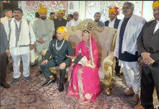 बीकानेर राजपरिवार की राज्यश्री कुमारी ने वर-वधू को आशीर्वाद दिया।