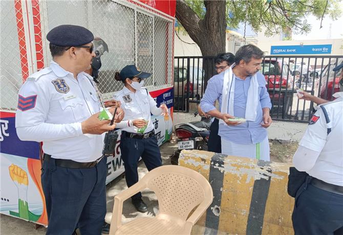 जयपुर। भीषण गर्मी को देखते हुए राज्य सरकार अपने स्तर पर कार्मिकों के लिए सुविधा कर रही हैं लेकिन सामाजिक संगठन टीम वंदे मातरम् ने जयपुर के ट्रैफिक पुलिस कार्मिकों के लिए अनूठी पहल की है। टीम वंदे मातरम् की ओर से बुधवार को राजधानी के कई इलाकों में ट्रैफिक पुलिस कर्मियों को छाछ का वितरण किया गया। टीम वंदे मातरम् के राष्ट्रीय संयोजक डॉ.दीनदयाल जाखड़, महासचिव अरविन्द राज, राजेश शर्मा, कमल जैन और विद्याधर वर्मा ने सिविल लाइंस ,सोडाला,सिंधी कैंप,रेलवे स्टेशन, पांच बत्ती , कलेक्ट्रेट चौराहा, पुलिस कमिश्नरेट चौराहा, यादगार ,नारायण सिंह सर्किल, रामबाग सर्किल ,हाई कोर्ट सर्किल ,स्टैचू सर्किल , सहकार मार्ग सहित कई इलाकों में छाछ का वितरण किया। टीम वंदे मातरम् के महासचिव अरविन्द राज ने बताया कि राष्ट्रीय संयोजक जाखड़ यमुना का पानी कालख बांध तक लाने के लिए पिछले 9 माह से नंगे पैर ही चल रहे हैं और इस गर्मी में पुलिस कार्मिकों की तकलीफ को समझते हुए संगठन की ओर से "छाछ वितरण कार्यक्रम"का निर्णय लिया गया। टीम वंदे मातरम् की ओर से जून माह तक राजधानी के कई इलाकों में छाछ का वितरण किया जाएगा।