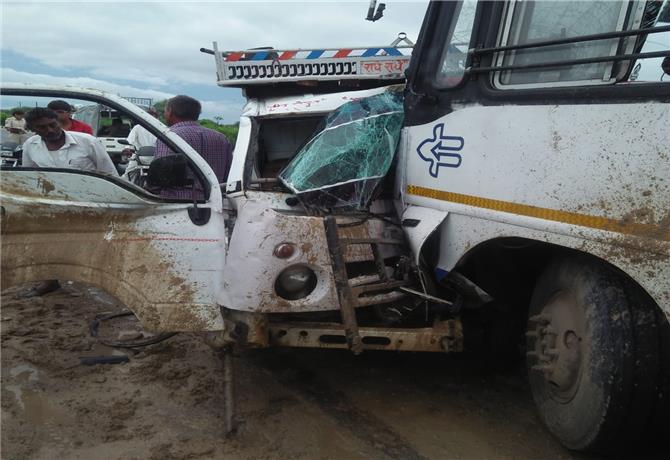नेशनल हाईवे-12 पर आज सुबह कोथून पुलिया के पास गलत दिशा में चल रहे एक टेम्पों और रोडवेज बस में आमने-सामने की भिड़ंत हो गई। पुलिस के मुताबिक इस हादसे में टेम्पों का चालक व रोडवेज का कन्डेक्टर गंभीर घायल हो गए। वहीं रोडवेज में सवार अन्य सवारियां को कोई चोट नहीं आई। दरअसल जयपुर से टोंक की तरफ जा रही रोडवेज बस के सामने से गलत दिशा में आ रहे टेम्पों चालक की लापरवाही से हाईवे पर हादसा हो गया। चाकसू थाना पुलिस मौके पर पहुंची और घायलों को अस्पताल पहुंचाया। वहीं घटना के कारणों की जांच शुरू कर दी है। पुलिस ने क्षतिग्रस्त रोडवेज व टेम्पो को हाईवे से साइड करवाकर यातायात सुचारु किया।
