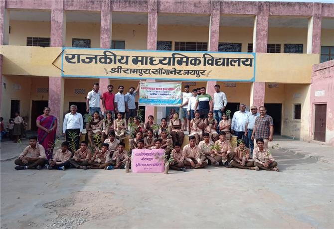 बुधवार को नवयुवक मण्डल के तत्वाधान में पौधारोपण कार्यक्रम आयोजित किया गया। सांगानेर तहसील के श्रीरामपुरा स्थित सरकारी स्कूल राजकीय उच्च माध्यमिक विद्यालय में स्कूल स्टाफ व सभी विद्यार्थियों के साथ स्कूल परिसर में पौधारोपण कर बच्चों को पेड़ से होने वाले लाभ की जानकारी भी दी। इस दौरान स्कूल के बच्चे व अध्यापक और नवयुवक मण्डल टीम, सीताराम, प्रमोद, रवि, विजय, पवन, अमित, संजय, राकेश, सूरज, दीपक, रितेश, रवी शंकर, अभिषेक, धर्मेन्द्र रावत, मनीष कुमार पंवार की टीम गणेश, विनोद, मंगल अन्य कई लोग उपस्थित रहे