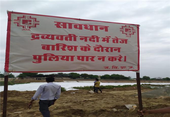 द्रव्यवती नदी में तेज बारिश के दौरान पुलिया पार न करें यह है सच्चाई पूर्व राज्य सरकार के ड्रीम प्रोजेक्ट द्रव्यवती नदी के नाम पर किया गया बड़ा भ्रष्टाचार की। यह कहना है अशोक मेहता (संयोजक - द्रव्यवती नदी, पीड़ित किसान संघर्ष समिति जयपुर) का। अशोक मेहता ने जेडीए व टाटा से मिलीभगत का आरोप लगाते हुए कहा कि अभी तक इस प्रोजेक्ट का 60 प्रतिशत काम भी नहीं किया और टाटा कम्पनी ने 90 प्रतिशत तक का भुगतान भी जे डी ए से उठा लिया है। आखिर जेडीए बार बार काम समय पर नहीं होने पर कम्पनी का समय क्यों बढ़ा रहा है? वहीं अशोक मेहता ने यह भी बताया कि द्रव्यवती नदी को पक्का करने पर आसपास के क्षेत्र में जल स्तर में गिरावट आई है जो भविष्य के लिए जल संकट के रूप में पैदा होगा। प्रशासन को चाहिए कि वे द्रव्यवती नदी की कमियों को दूर करें और जल्द से जल्द इस ओर ध्यान दें।