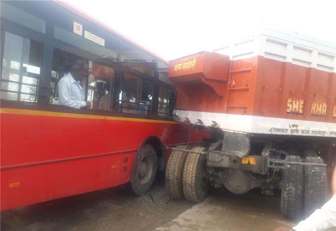 ट्रेलर ने लो फ्लोर बस को मारी टक्कर, लगा जाम.....